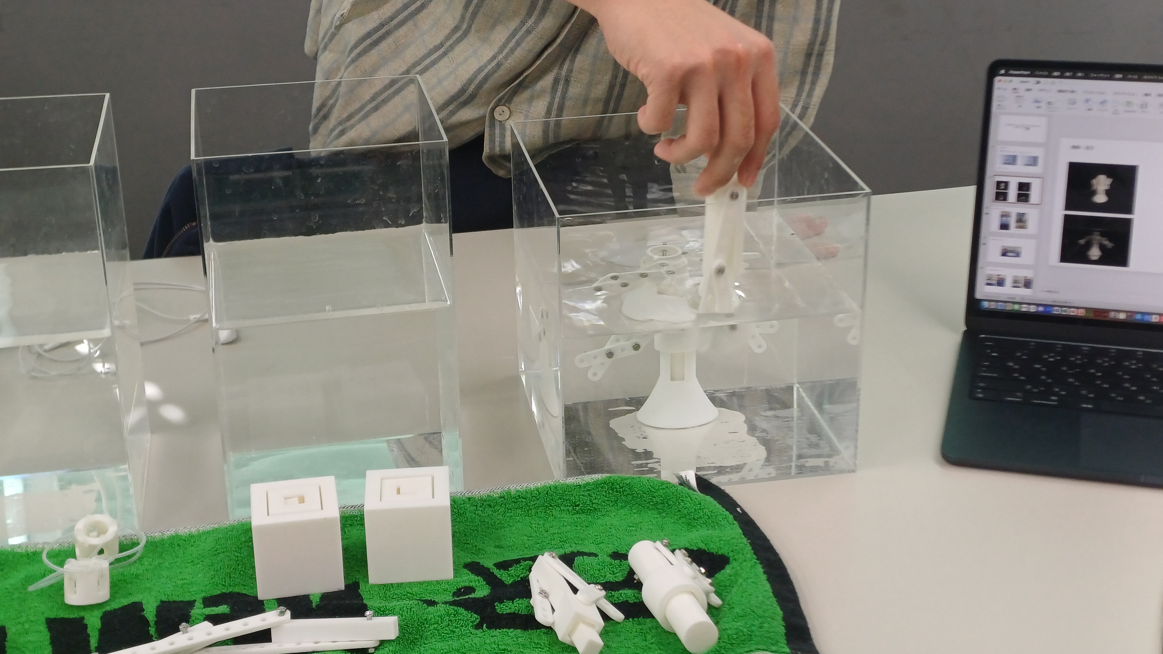 My classmates also explored scientific topics and expanded them into small-scale experiments. For instance, some investigated how the shape and material of objects can drastically affect their movement during an earthquake, while others explored how shapes of objects impact how they float. Another project examined how transparent sheets, when angled correctly, can produce light and create optically three-dimensional shapes.