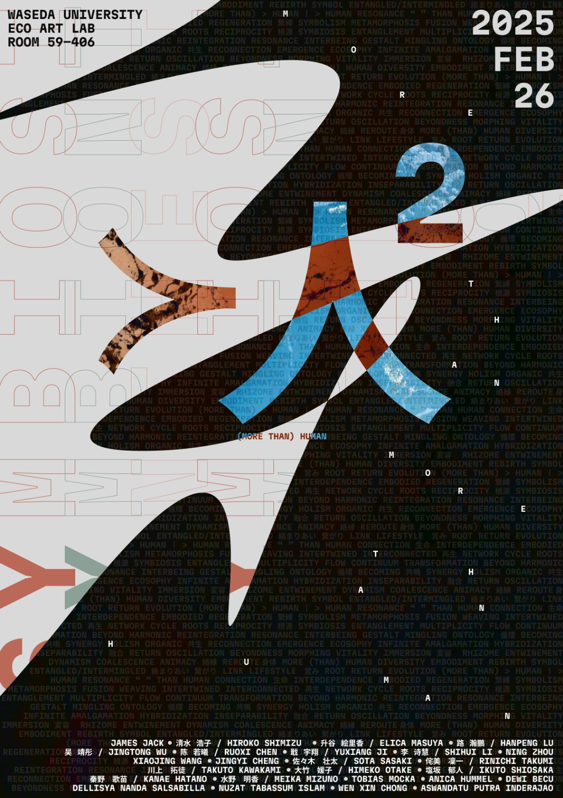 For me, my “more than human” experience was my entire exchange period in Japan. It was “more than human” because it felt bigger than myself. Moving to an entirely new place with different traditions, customs, food, buildings, even a different kind of air and water. I documented these experiences by collecting scraps and fragments I found during my stay, turning them into a collage. To me, this collage is “more than human” because it captures my raw, personal experience on these pages. It shows moments that may seem normal to others, yet to me were completely new, and even the things that eventually became normal became part of the experience themselves.