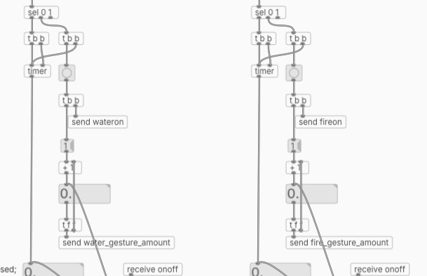 The project consisted of two parts. The first part involved using Python and a gesture-recognition library to detect hand gestures. Using the laptop camera and providing numerous samples of specific gestures, we trained the system to recognise when a particular gesture was shown. Depending on the gesture detected by the camera, a corresponding signal was sent to PlugData, triggering specific ambient sounds. For example, a particular hand gesture was linked to the element of fire, resulting in the ambient sound being enriched with fire-like sounds.